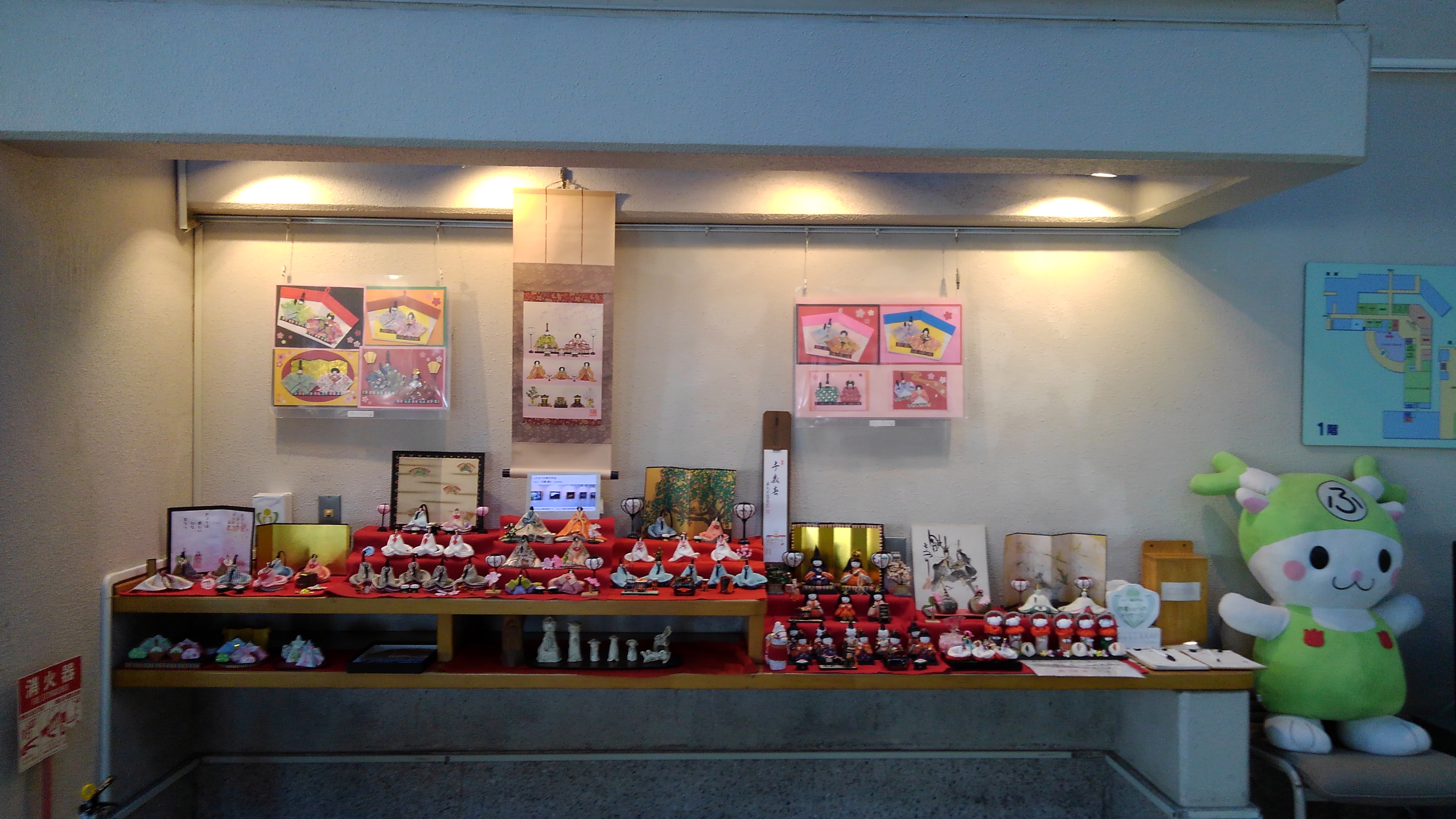 今月は、クラブ団体『るりの会』さまの綿棒雛作品展です。 お顔が綿棒で出来たお雛様に着物を着せた小さなお雛様です。 お雛様一体一体の着物生地や小道具なども様々でとても可愛らしいです。